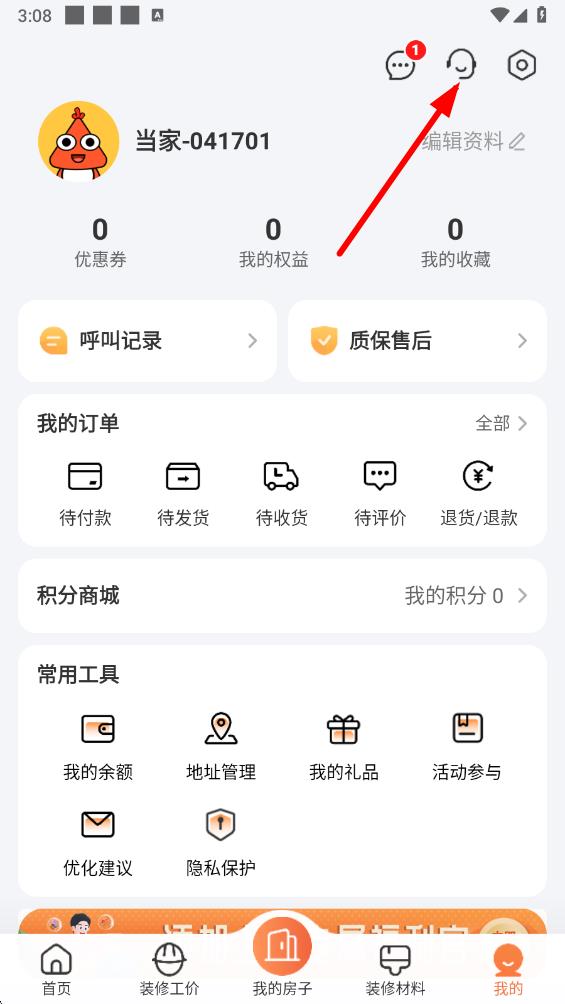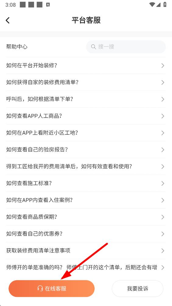 3、进入平台客服界面后!提前沟通好让拆修变得更便利,一键采办辅材,